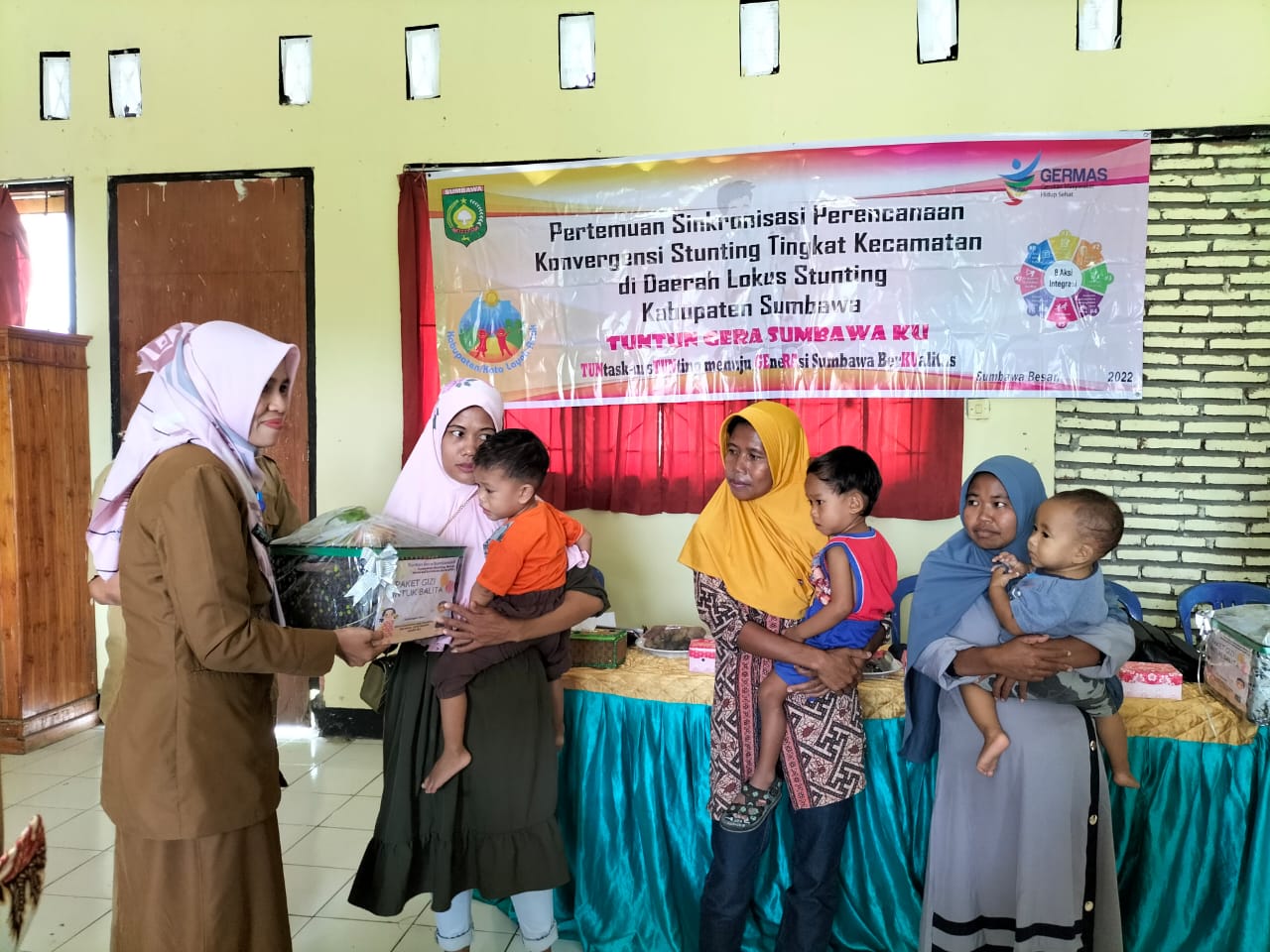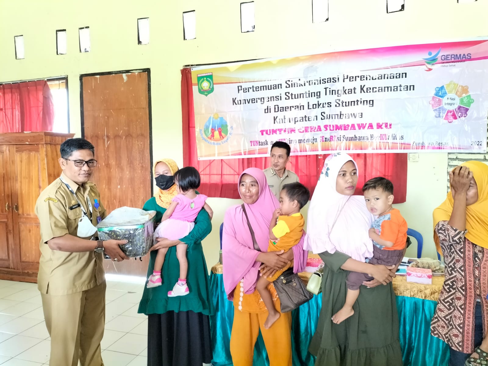 Kegiatan sosialisasi dan sinkronisasi perencanaan pencegahan stunting tingkat kecamatan di daerah lokus stunting dan pemberian paket bantuan balita stunting di Kecamatan Orong Telu menandai berakhirnya kegiatan sosialisasi yang telah dilaksanakan di enam kecamatan lokus stunting Kabupaten Sumbawa Tahun 2022 yaitu Kecamatan Labuhan Badas, Kecamatan Labangka, Kecamatan Utan, Kecamatan Empang, Kecamatan Rhee, Kecamatan Orong Telu. Sebelum memberikan sambutan dan arahannya Varian Bintoro akrab disapa, memberikan paket bantuan kepada sasaran balita di wilayah kecamatan orong telu dimana paket bantuan ini merupakan hasil dari gerakan GASIBU (Gerakan Seribu Rupiah) yang diinisiasi oleh rekan-rekan dari Dinas Kesehatan Kabupaten Sumbawa. Melalui gerakan ini juga diharapkan memicu dan mendorong selurh pemangku kepentingan untuk bersinergi bersama mengatasi masalah stunting melalui gerakan sederahan bermanfaat atau aksi bersama dalam percepatan penrunan stunting.